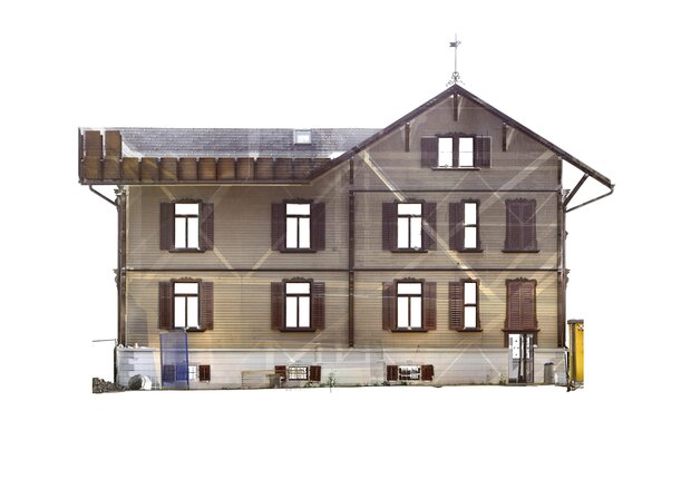 Mit dieser exakten und wirtschaftlichen Messmethode können wir Ihr Objekt innert kürzester Zeit korrekt, komplett und detailgetreu vermessen, das Terrain gleich inklusive!